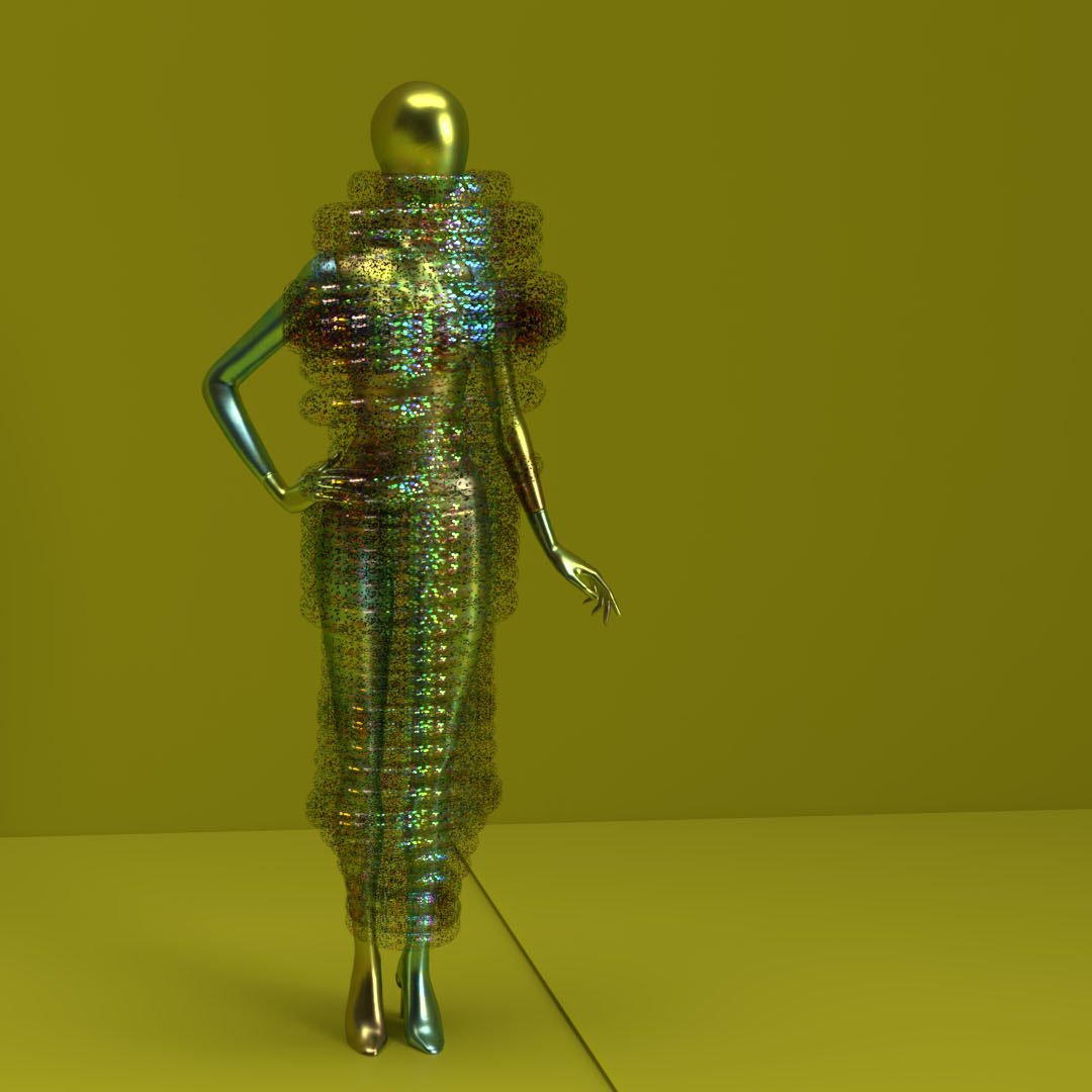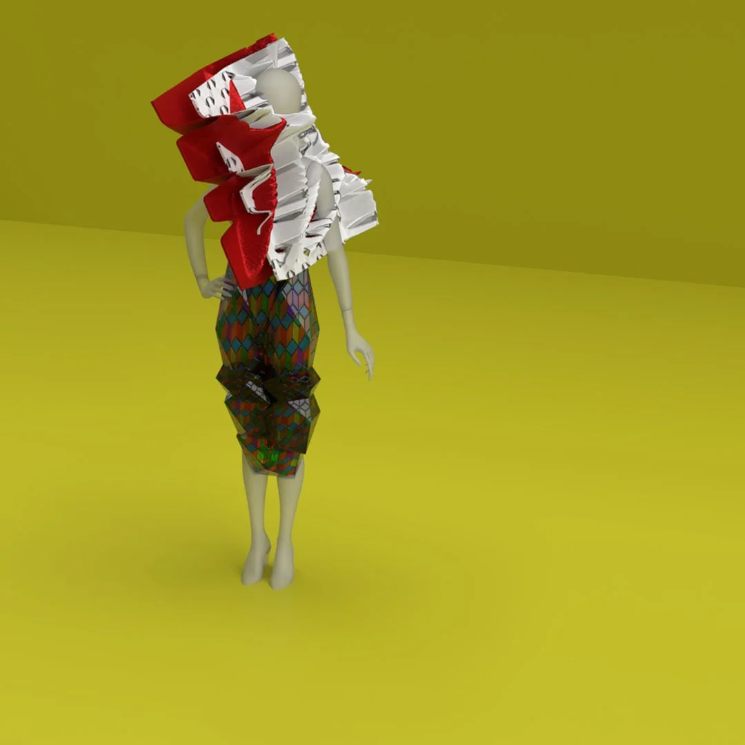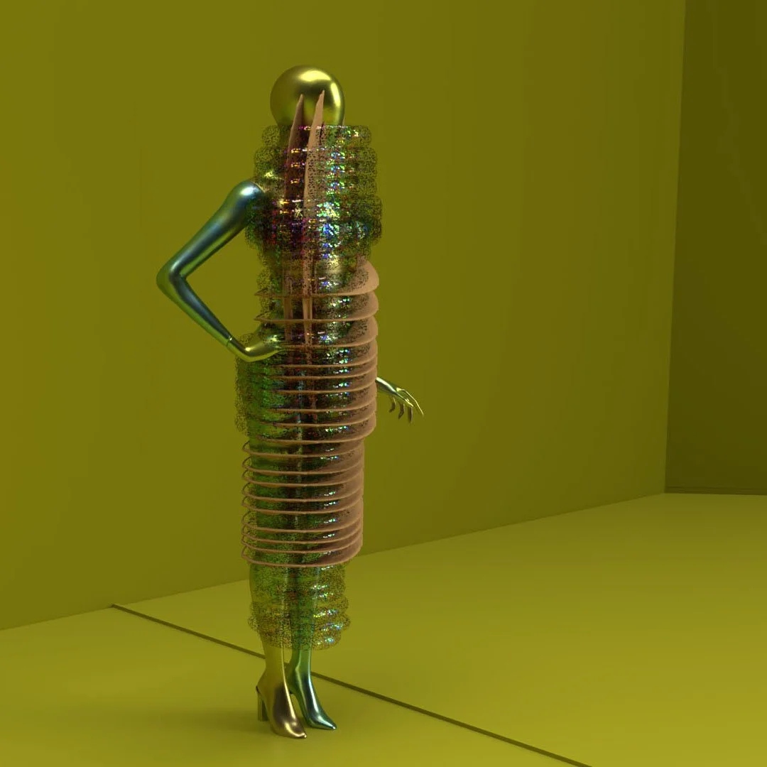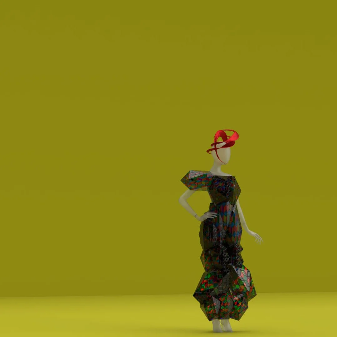 Futuristic City Couture Collection is an architectural 3d design process where the layers of dynamic elements combine with the principle of fashion. This design evolution produces conceptual couture for the metaverse.